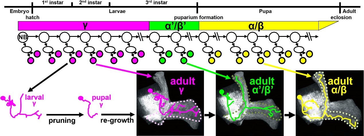 9. Lai, Y.W., Chu, S.Y., Wei, J.Y., Cheng, C.Y., Li, J.C., Chen, P.L., Chen, C.H. and Yu, H.H. (2016). Drosophila microRNA-34 Impairs Axon Pruning of Mushroom Body γ Neurons by Downregulating the Expression of Ecdysone Receptor. Scientific Reports 6: 39141. doi: 10.1038/srep39141.