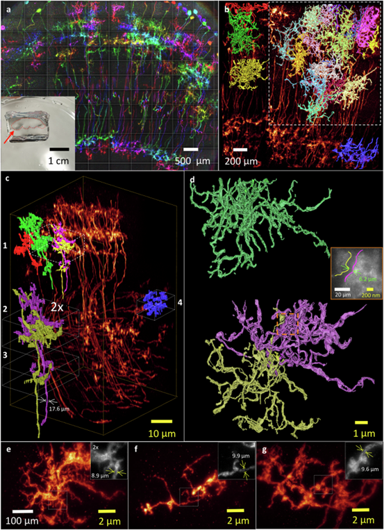 This study introduces a novel approach to high-resolution biological imaging by combining potassium polyacrylate-based hydrogels with Bessel lightsheet microscopy. The expansion microscopy (ExM) method achieves a 40-fold linear expansion, corresponding to a volumetric enlargement of 64,000 times. Using an axicon-based Bessel lightsheet microscope, this technique enables three-dimensional imaging at nanoscale resolution, rivaling that of electron microscopy. As demonstrated with expanded Drosophila brains, the method allows visualization of synaptic scaffold protein structures (~10 nm) across whole-brain volumes, while preserving the advantages of multicolor fluorescent labeling inherent to optical microscopy. The simplicity and speed of "Potassium Polyacrylate Expansion Lightsheet Microscopy" facilitate systematic, multicolor analyses of fixed thick biological samples, offering a powerful tool for exploring biological structures and advancing disease research with unprecedented efficiency.