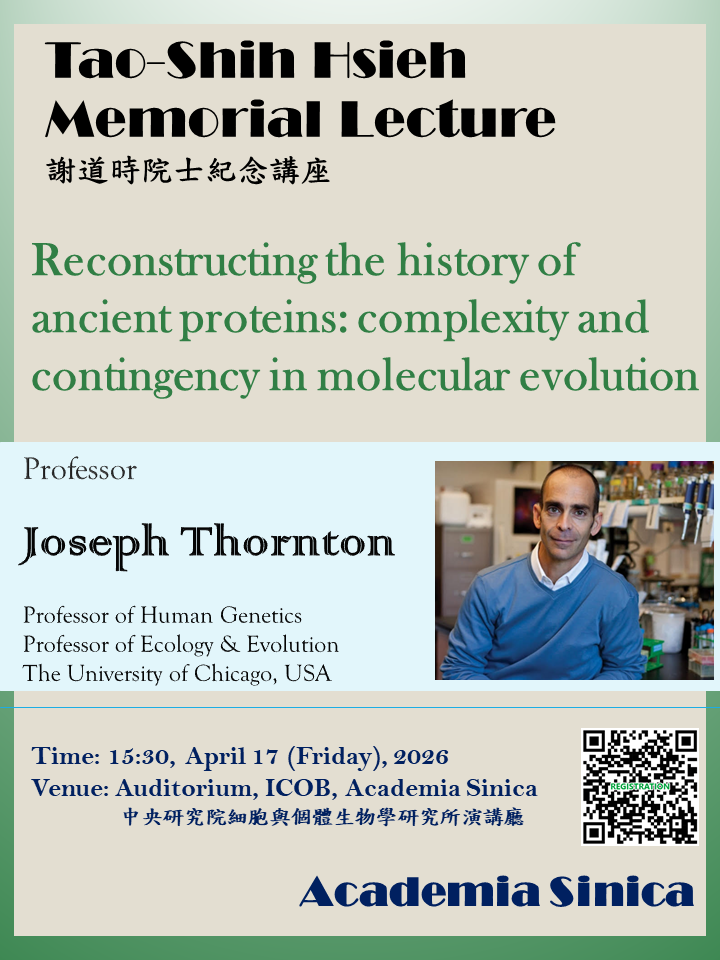 - Title:[Tao-Shih Hsieh Memorial Lecture] Reconstructing the history of ancient proteins: complexity and contingency in molecular evolution