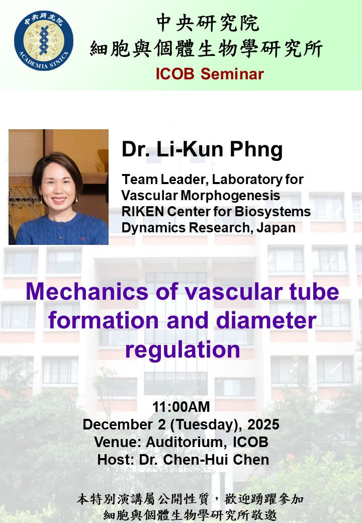 Venue: Auditorium, Institute of Cellular and Organismic Biology, Academia Sinica