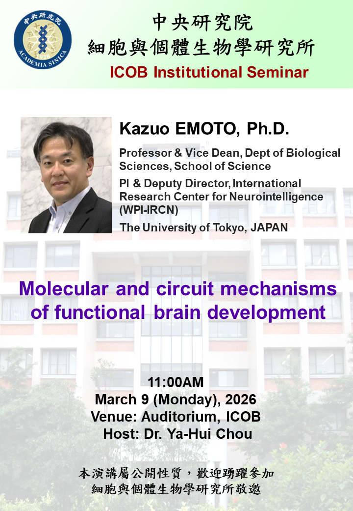 Venue: Auditorium, Institute of Cellular and Organismic Biology, Academia Sinica