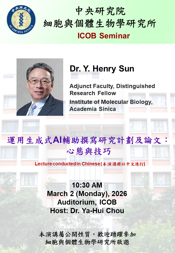 - 講 題:[細生所演講] 運用生成式AI輔助撰寫研究計劃及論文:心態與技巧